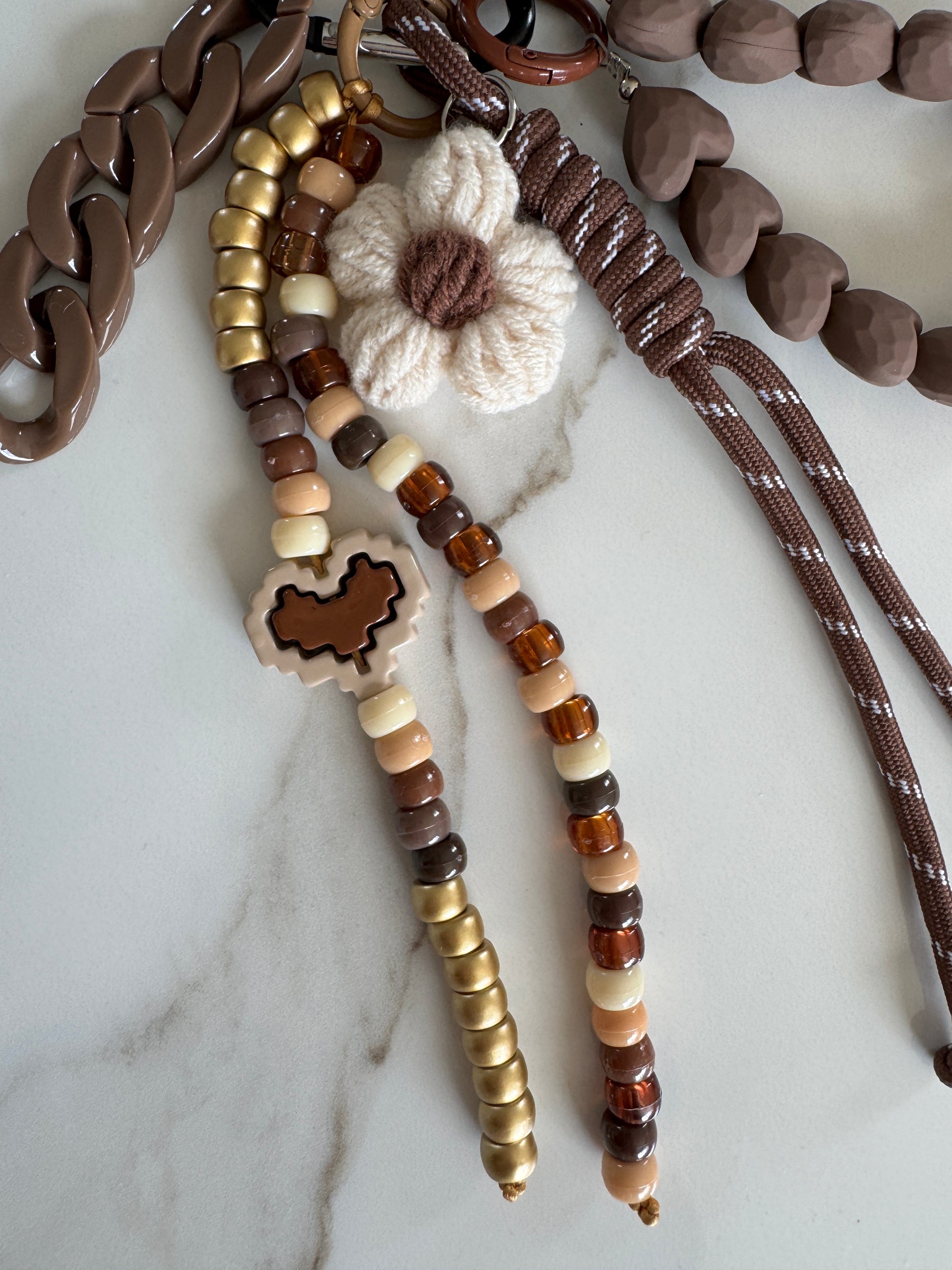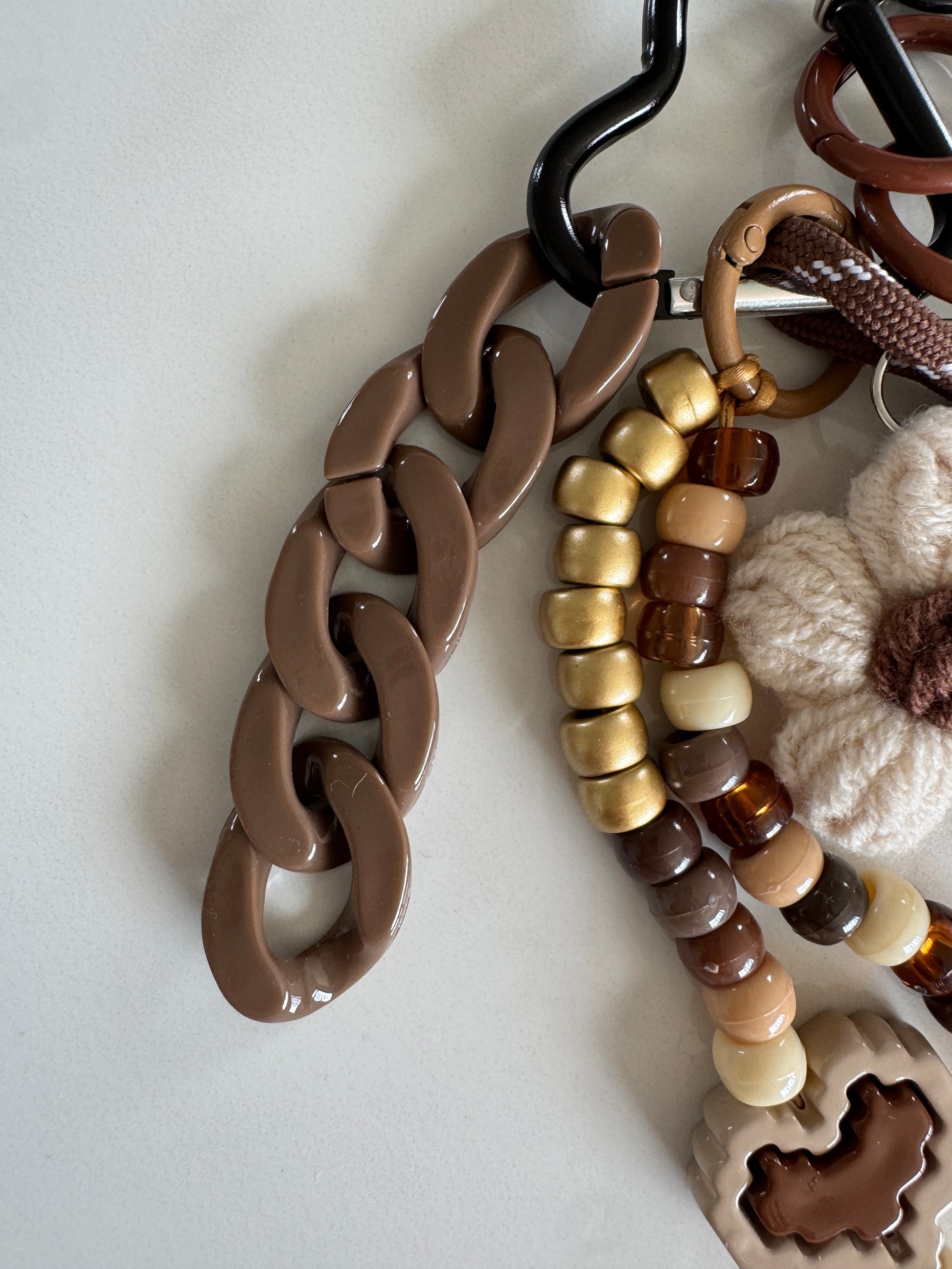 Un grigri porte-bonheur aux teintes chocolatées, doux et texturé comme un latte bien mousseux. Pensé pour les amoureux·ses de détails, de matières et de réconfort visuel, ce bijou de sac mêle chaleur, contrastes et charme fait main à la sauce Trop Choubidou.