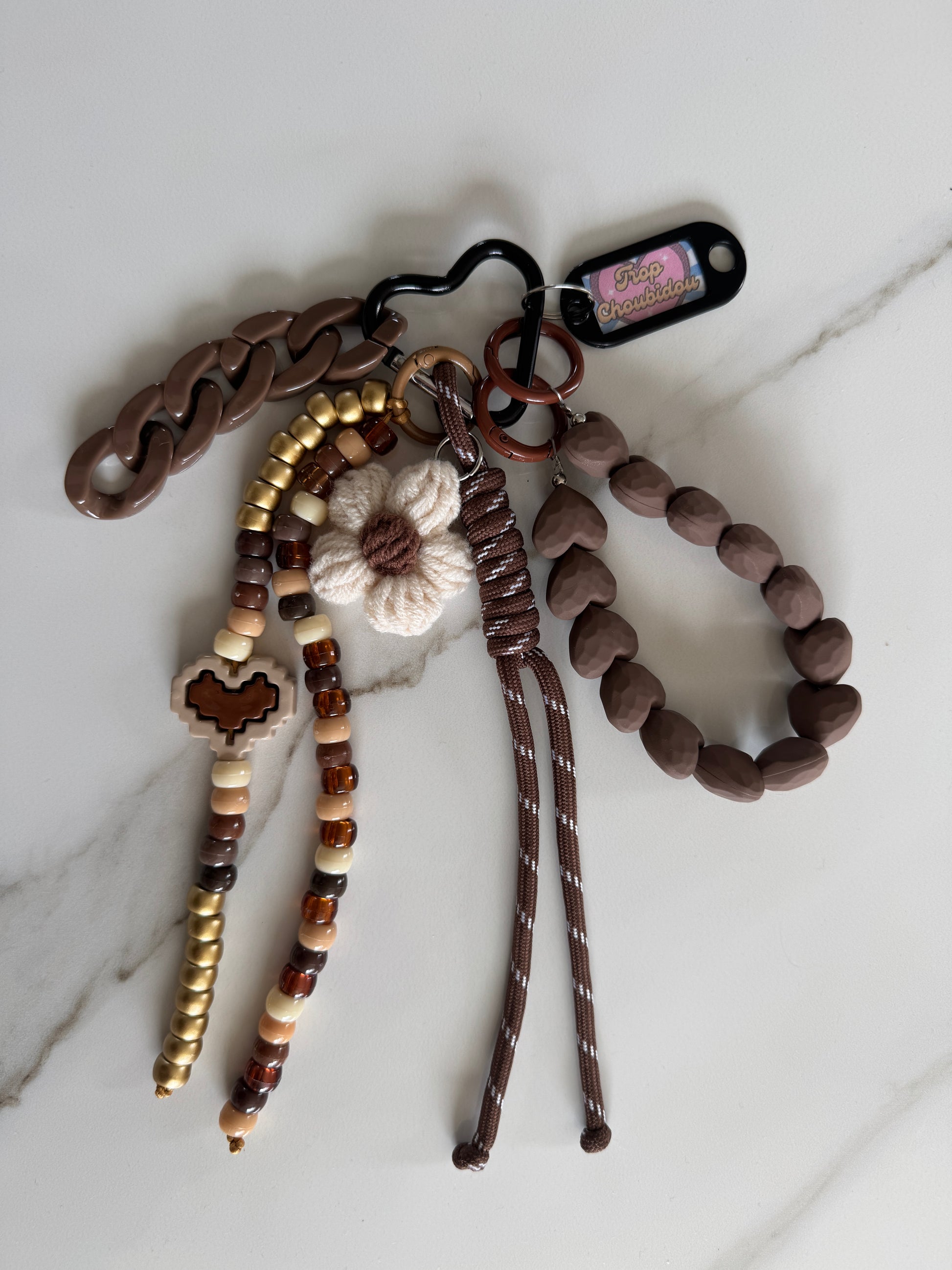 Grigri Bohème Chocolat & Fleurs – Bijou de Sac Fait Main | Édition Trop Choubidou