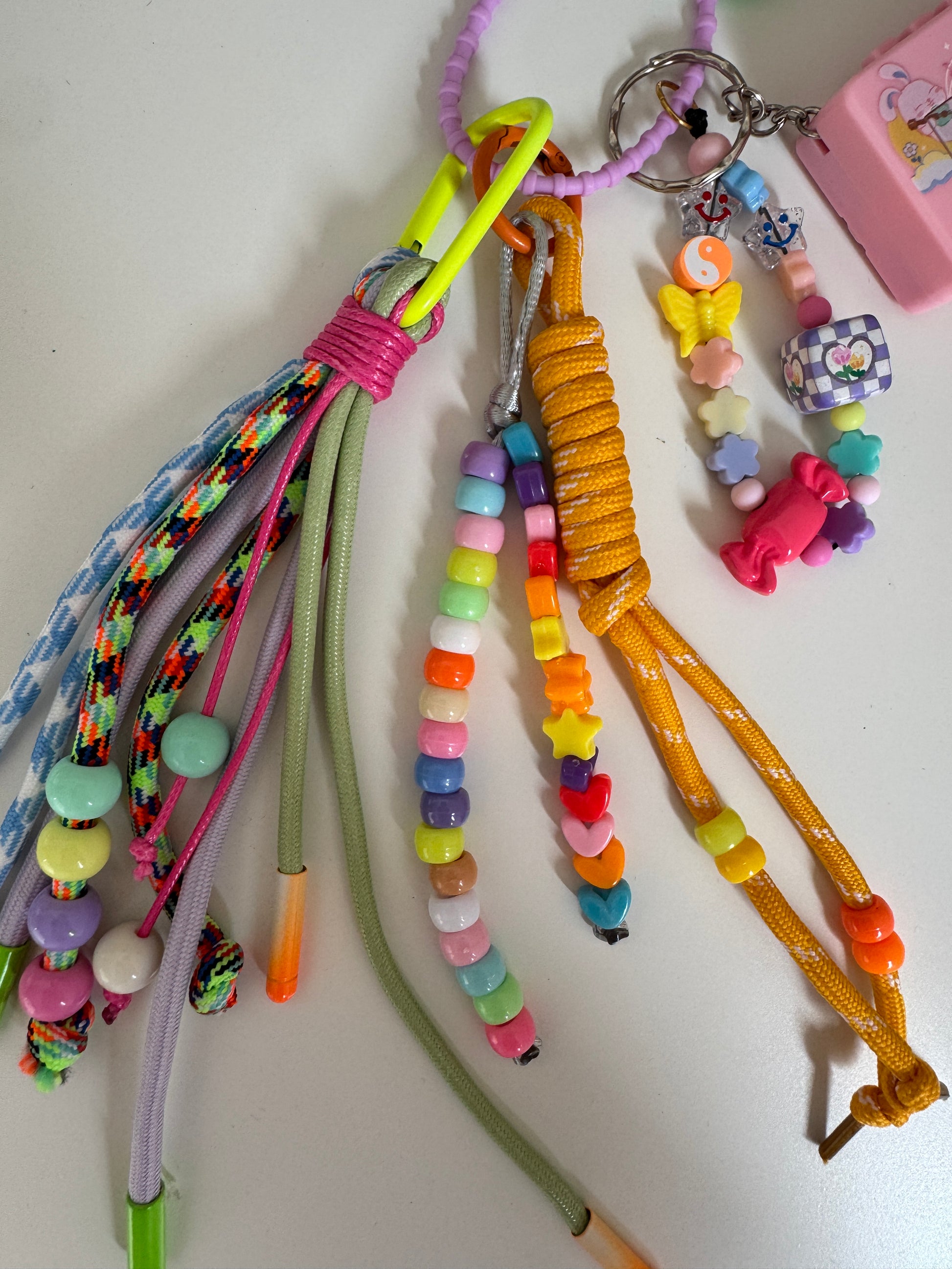 - Perles fantaisie : en forme de bonbons, fleurs et cœurs aux couleurs vives.