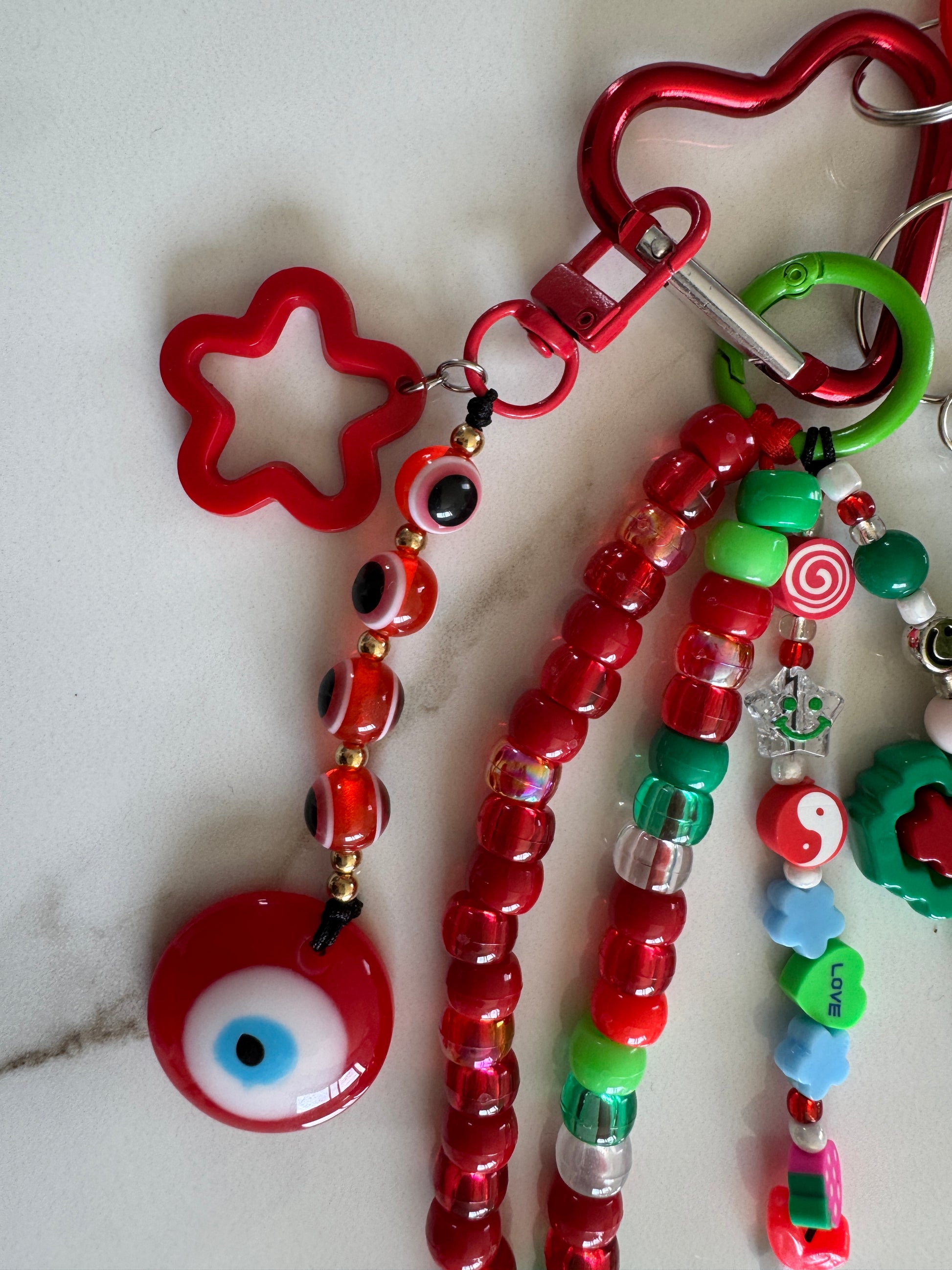 Ce grigri porte-bonheur artisanal est un concentré de fantaisie, d’ondes positives et de nostalgie sucrée. Idéal comme bijou de sac original, il mêle symboles de protection, perles fantaisie et touches kawaii inspirées de l’univers pop des années 2000.