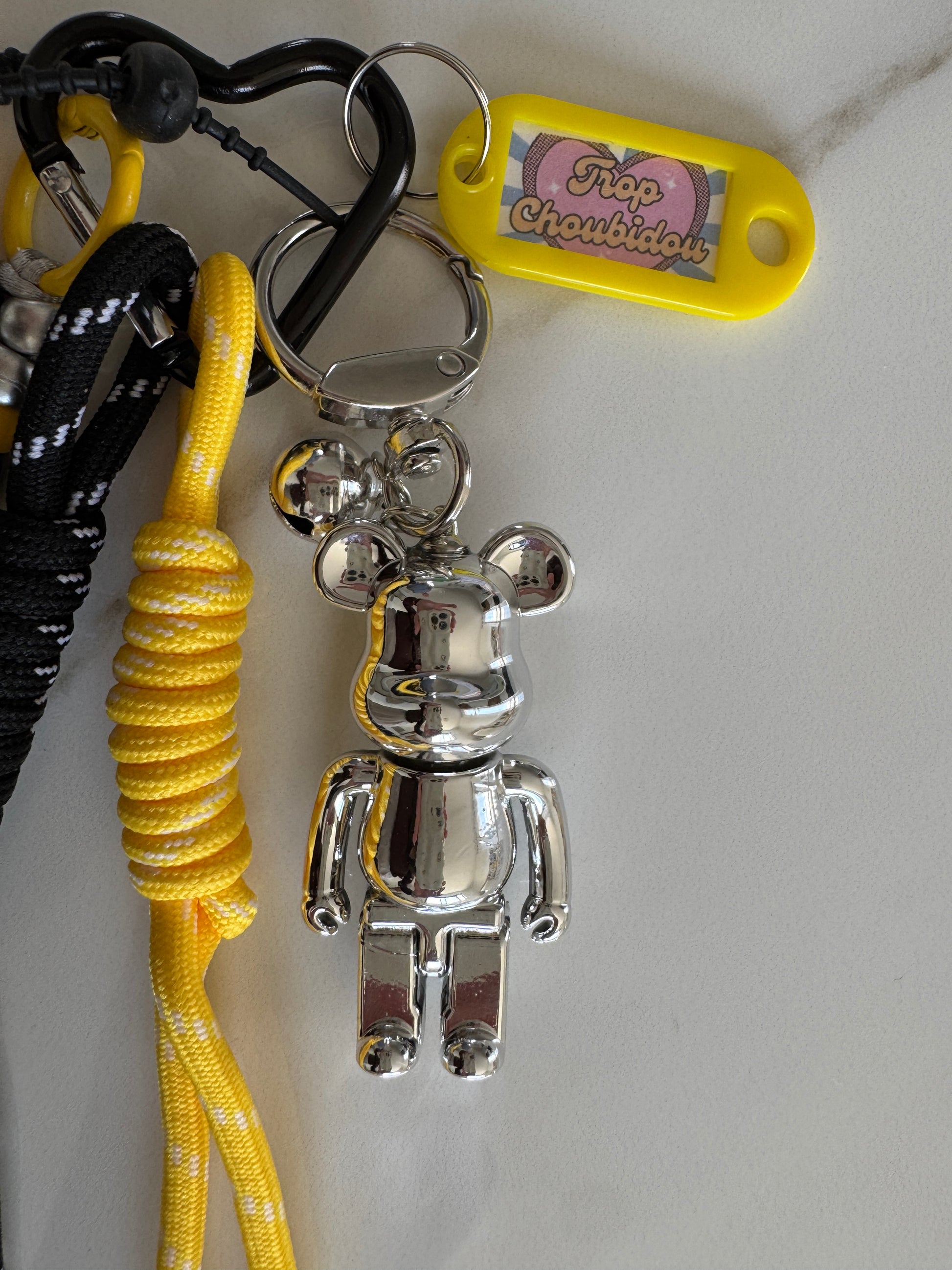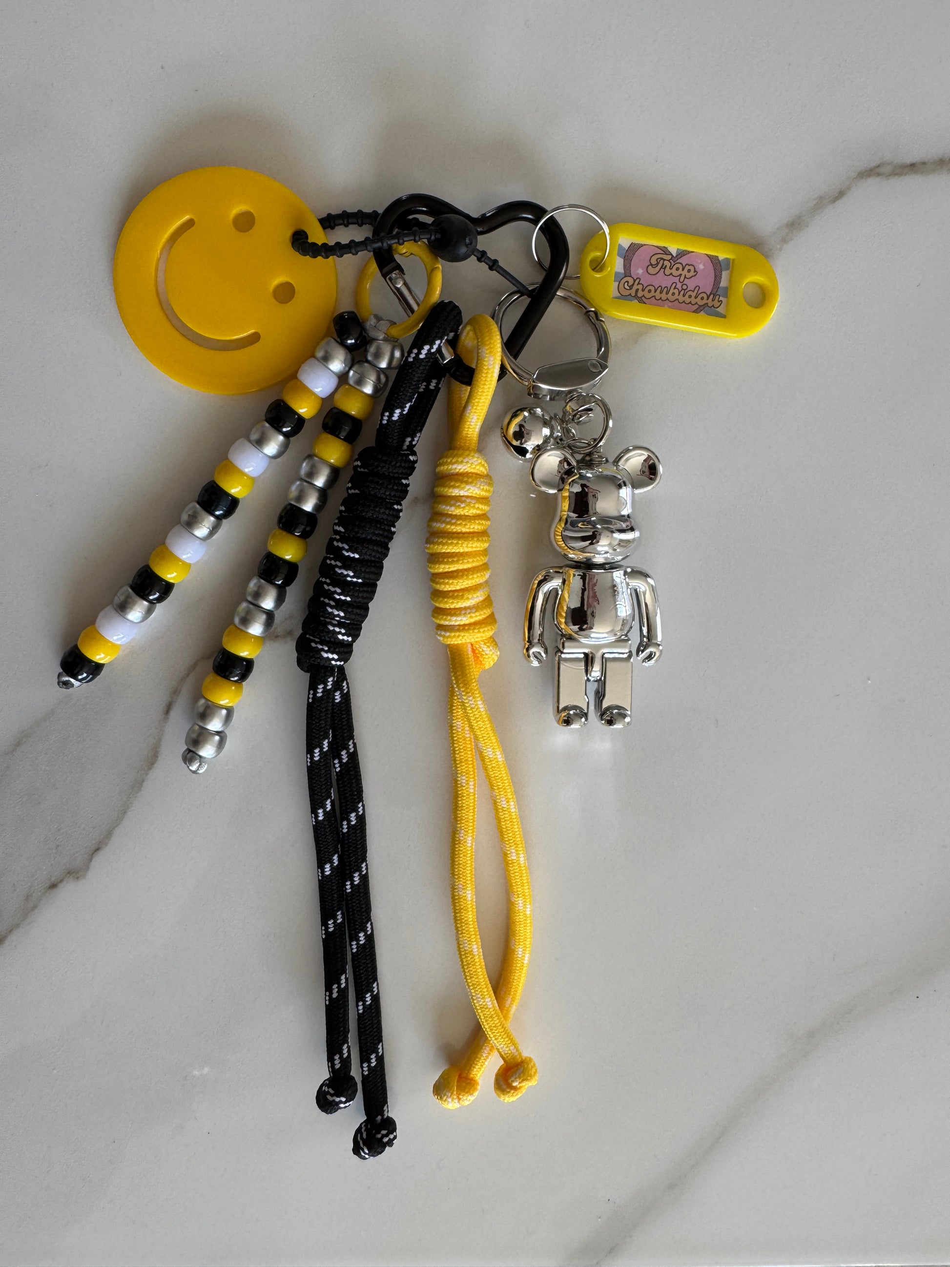 Grigri Urban Pop Smiley & Ours Chromé – Bijou de Sac Fait Main | Édition Trop Choubidou