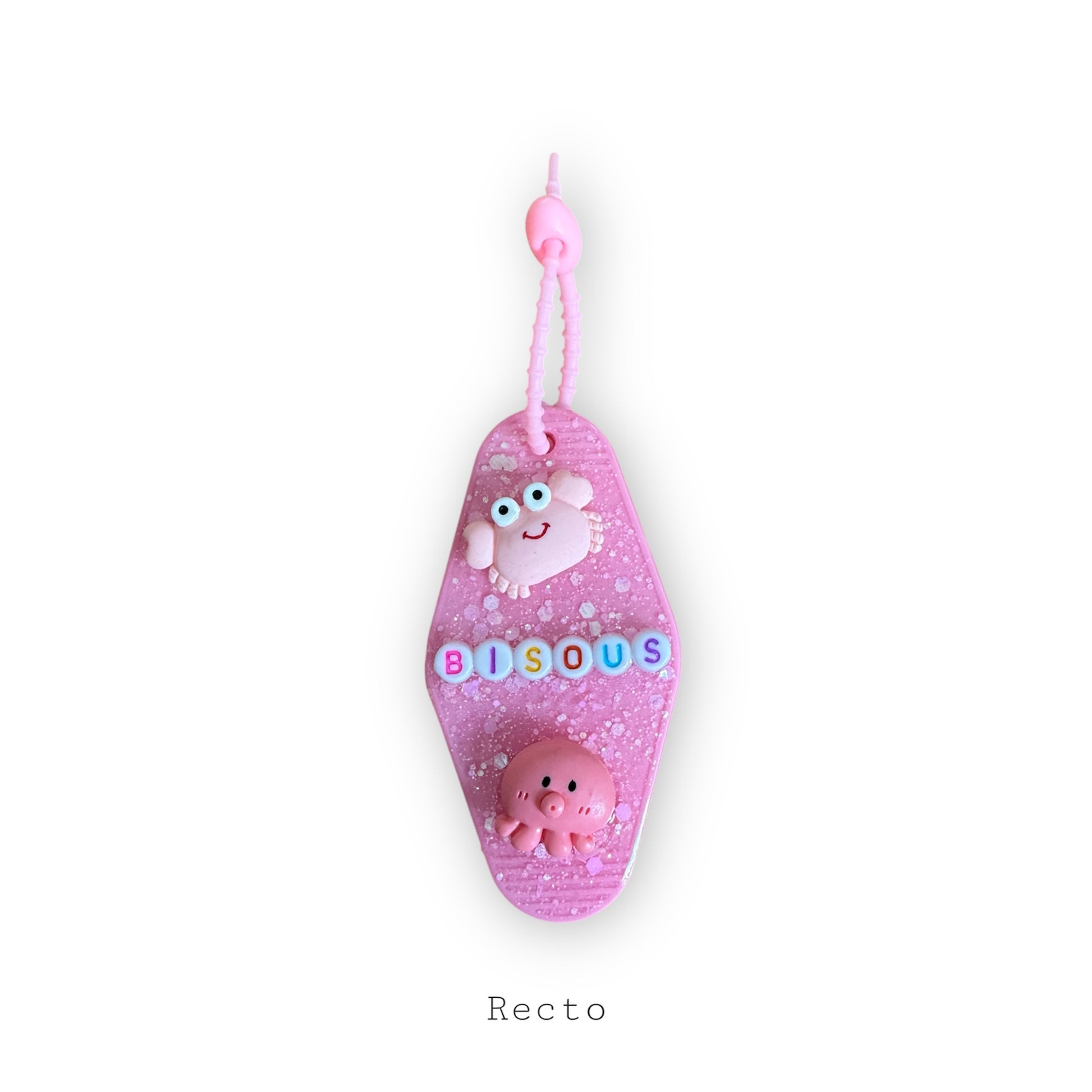 Porte-clés Motel Rose “Bisous” – Crabe & Poulpe Kawaï | Déco Résine Fait Main | Édition Trop Choubidou
